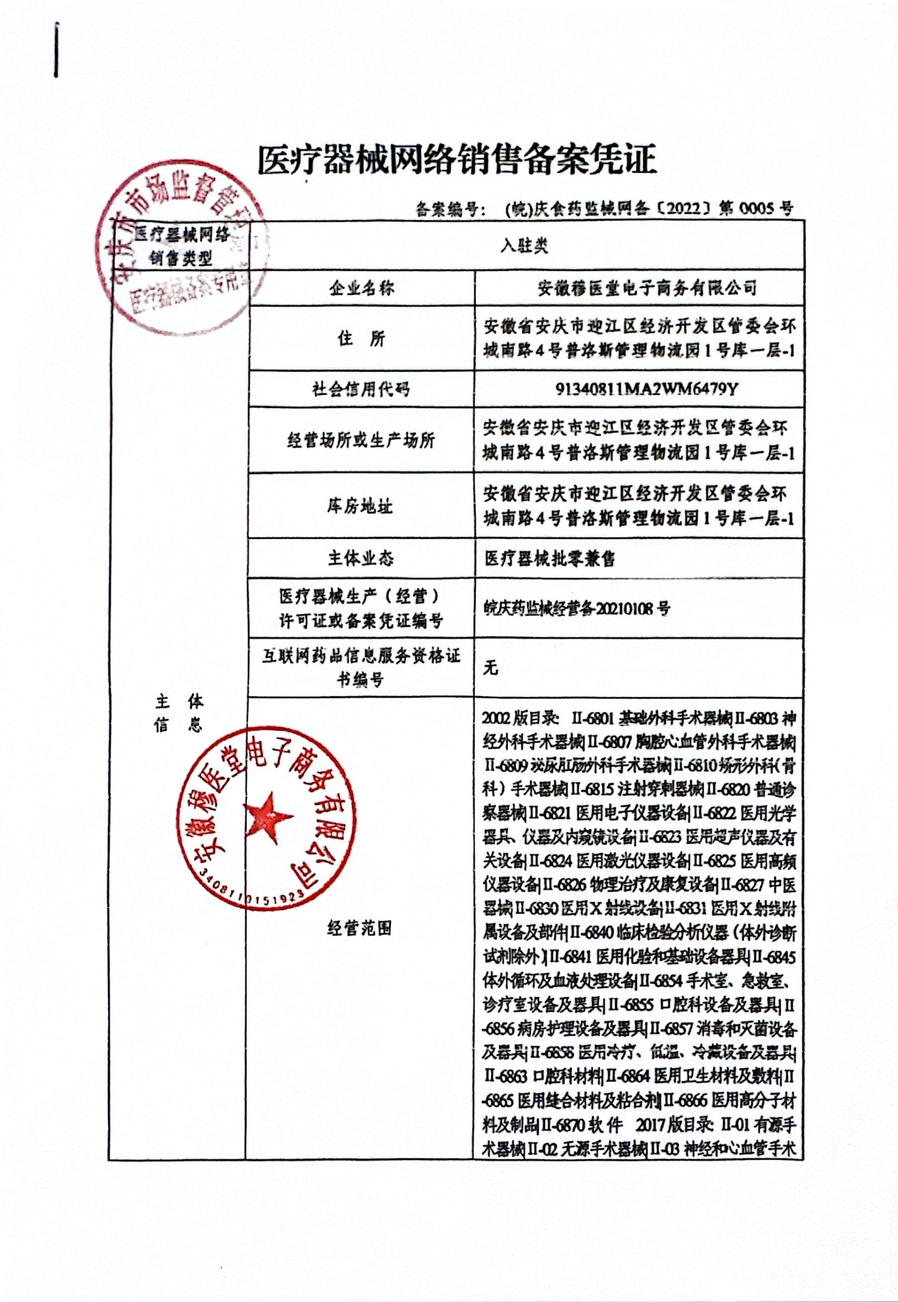 公司以授權(quán)品牌“穆一堂”,已經(jīng)在淘寶、京東、拼多多、百度健康商城、快手、美團等多個主流電商平臺開通店鋪,公司運營資質(zhì)產(chǎn)全,獲得了:醫(yī)療器械經(jīng)營備案憑證、醫(yī)療器械網(wǎng)絡(luò)經(jīng)營備案、食品經(jīng)營許可證、互聯(lián)網(wǎng)醫(yī)療器械信息服務(wù)資格證、商標授權(quán)等資質(zhì)。經(jīng)營品類涵蓋了前列腺系列醫(yī)療器械,如凝膠、栓劑、膏貼等,還新推出了男科、婦科健康產(chǎn)品,以多品類產(chǎn)業(yè)格局,構(gòu)建此類用戶一站式健康服務(wù)業(yè)體系。